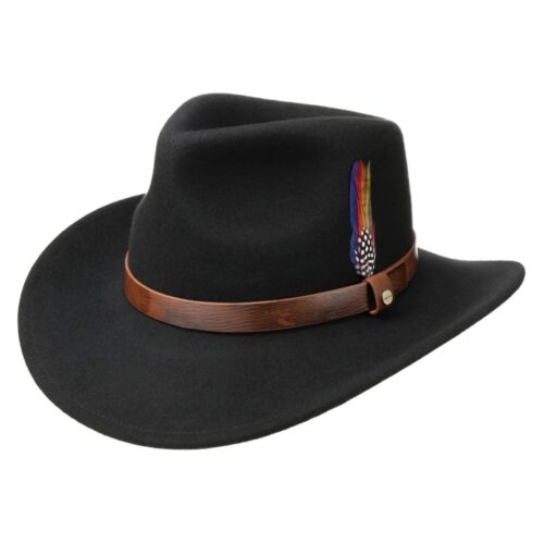 Part of the Buffalo collection, this cowboy hat is made in the USA of high-quality, weather-resistant 4X buffalo felt. Its classic Western profile features a classic cattleman crease, a 4″ brim and a 4 5/8” regular oval crown. Additional details include a leather sweatband, satin lining, and a self-matching hat band with a three-piece silver-toned buckle set, as well as a Stetson hat box.