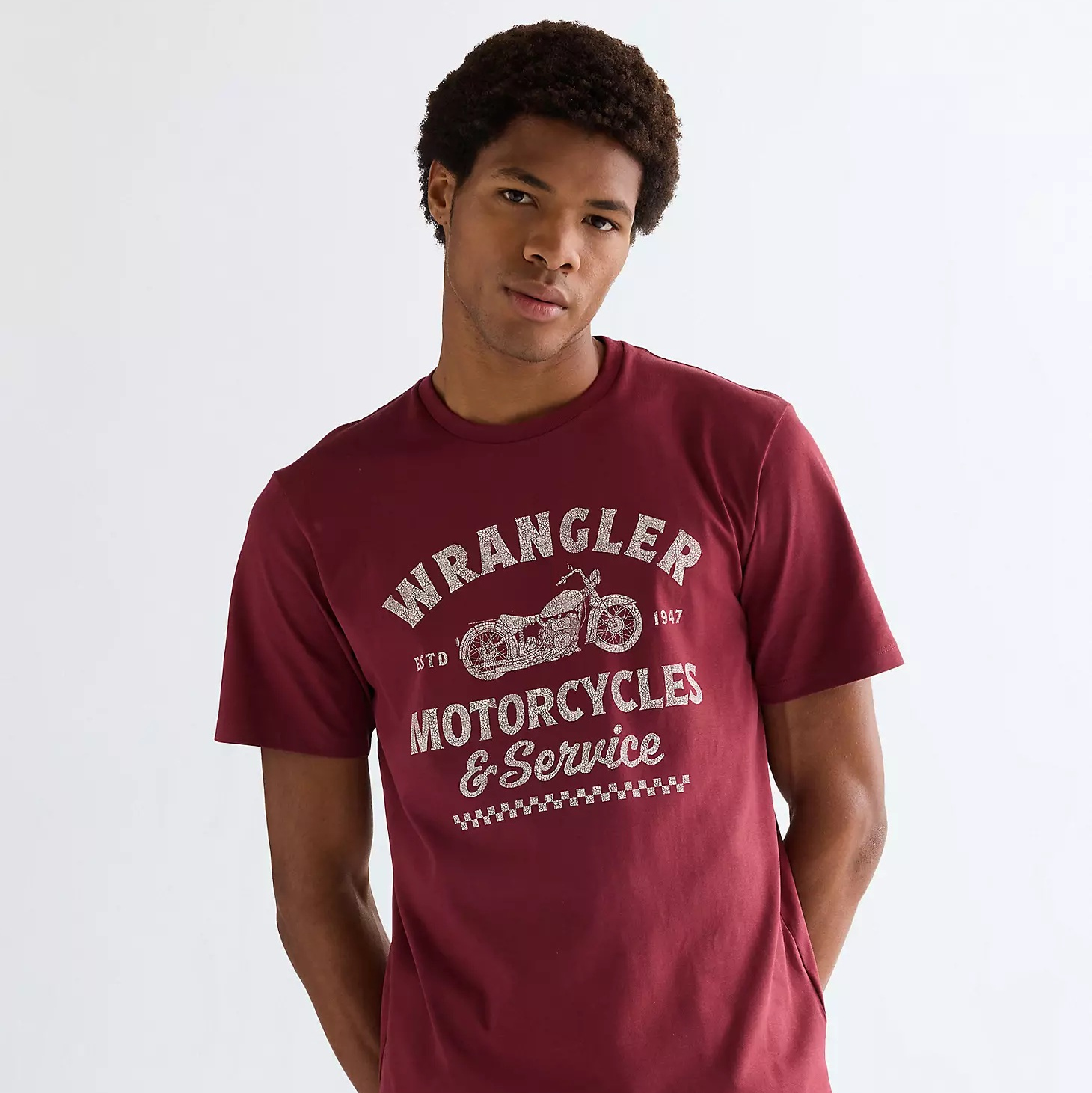 This Wrangler classic crew neck t shirt comes in soft and airy cotton with a fabric weight of 206 GSM, complete with motorcycle graphics that celebrate our legacy. Featuring graphics that celebrate the motorcycling legacy, this season’s Americana T-Shirt is ready for the ride. 100 % cotton that stays comfortable all year long. Easy-wearing regular fit with a classic crew neck. Made from heavyweight jersey cotton that provides all-day comfort. Large Wrangler motorcycle graphic print on the front.